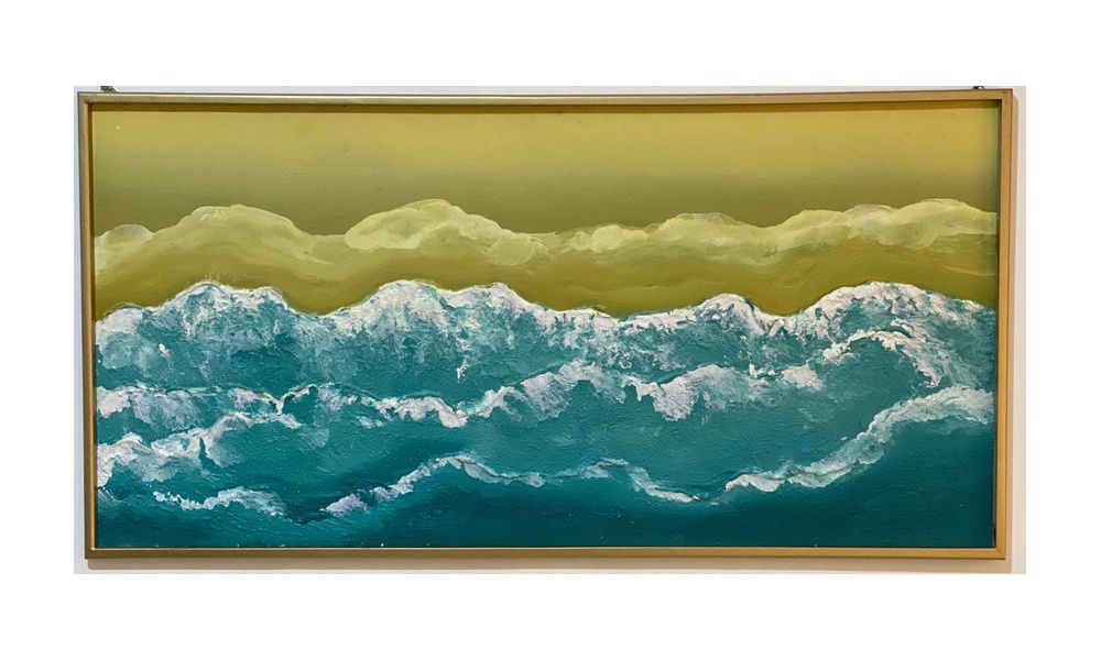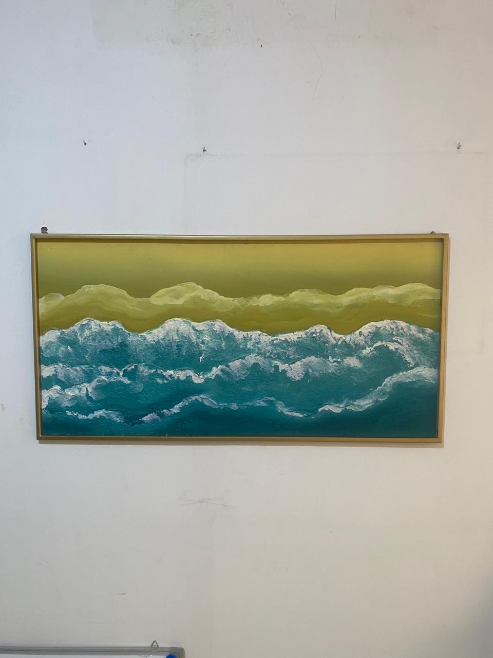 التفاصيل البارزة تجعل الأمواج تبدو وكأنها تتحرك فعلاً، بينما تناسق درجات الأزرق والأبيض والأخضر يضيف إحساسًا بالراحة والانسياب. الفريم الذهبي الأنيق يضيف لمسة فاخرة ويبرز جمال ألوان اللوحة، مما يجعلها اختيارًا مثاليًا لغرف المعيشة، المكاتب، الريسبشن، أو كورنر الاسترخاء.