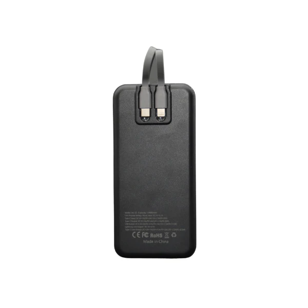 يحتوي على كابل Type-C وiPhone Lightning مدمجين، علشان تكون جاهز تشحن أي جهاز بدون الحاجة لكابلات إضافية. 🔄📲