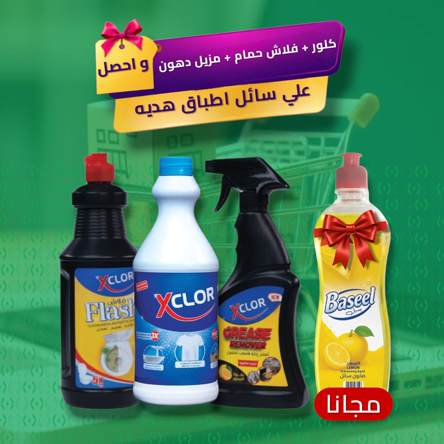عرض توفير المنظفات الشامل – كلور مبيض + فلاش + مزيل دهون + صابون رغاوي هدية | من متجر MnelMakhzan