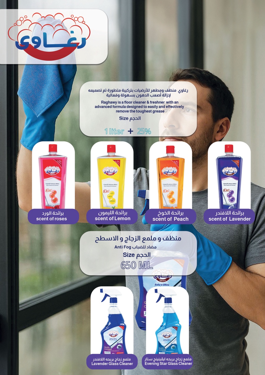 ج.مرغاوي منظف الارضيات يوفر لك نظافة عميقة وتطهير فعال لكل أنواع الأرضيات، بتركيبة اقتصادية وآمنة. Raghawy floor cleaner
