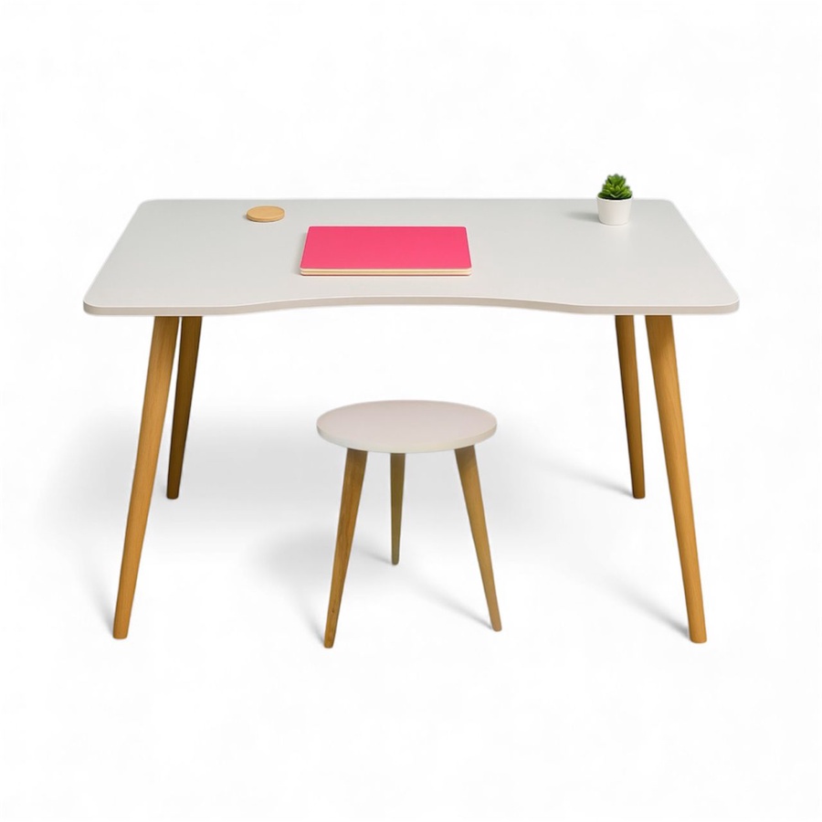 المكتب مصنوع من خشب MDF ميلامين إسباني عالي الجودة، مقاوم للخدش وسهل التنظيف، علشان يفضّل جديد مع الاستخدام اليومي. كمان مزوّد بـ رجول خشب زان طبيعي بتضيف قوة وثبات، وتكمل الشكل العصري للمكتب.