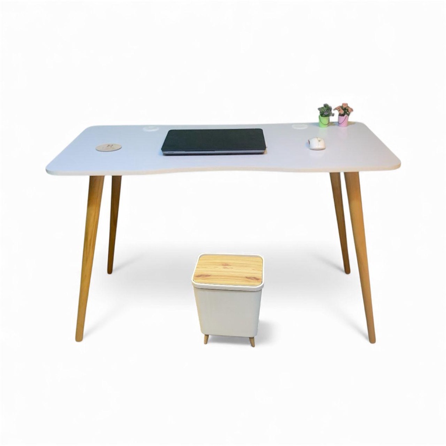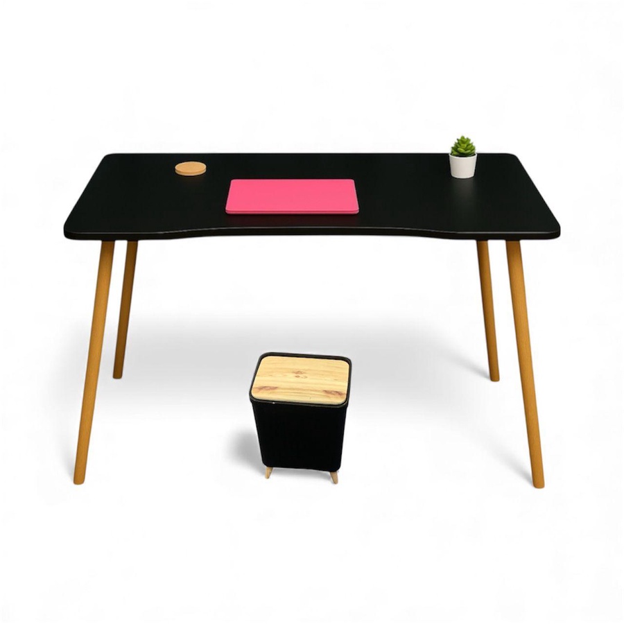 المكتب مصنوع من خشب MDF ميلامين إسباني عالي الجودة، مقاوم للخدش وسهل التنظيف، علشان يفضّل جديد مع الاستخدام اليومي. كمان مزوّد بـ رجول خشب زان طبيعي بتضيف قوة وثبات، وتكمل الشكل العصري للمكتب.